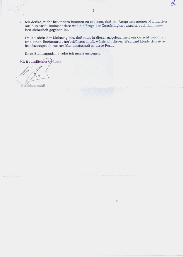 Reisepaß in den Genuß kommt, wie wir in unserer Stellungnahme vom 13.10.2004 ausdrücklich erwähnt haben. Mehr, antworten wir nicht und wir bedauern sehr. Wir bitten Sie, nun uns über die Entscheidung