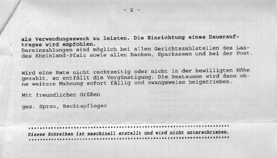 wegen der Ratenzahlung diesbezüglich bei einer solchen Behörde gestellt habe; denn ich weiß überhaupt nichts, wer diesen Antrag gestellt hat, weil die Staatsanwaltschaft Zweibrücken bis heute den Name diese Person mir nicht gegeben