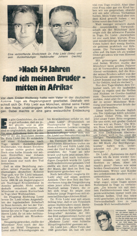 seiner Familie zu forschen. Er hat erfahren, von seinem eigenen Vater, dass da wohl noch ein Halbbruder existiert, und dass er auf der Suche ist nach diesem Halbbruder, der immer noch in Togo leben soll, seinen Namen
